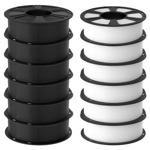 Net weight: 1 kg x 12 rolls , 6 Rolls Black + 6 Rolls White bulk pla filament