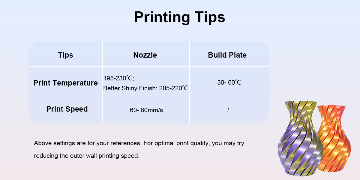 【Stunning Glossiness Uncompromising Quality】-Geeetech silk pla has a very smooth surface, bright and dazzling, black and bright colors collide,