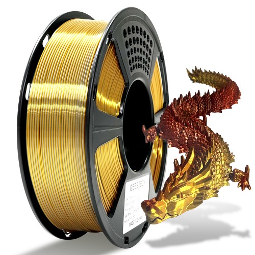 | About this item ăSilk Tri-Color PLAă- Smooth and shiny finish like real silk, no extra polishing needed. 1/3 of each combination of magicPLA coextruded filaments, it creates a really unique look on your parts! Multicolor silk filaments can output with incredible pearlescent and gorgeous silk surface. ăHigh Compatibilityă - 1.75mm filament diameter automation control, accuracy +/- 0.03mm. Perfectly compatible with 99% of the FDM 3D Printer and 3D Pen. ăNo Warping Multicolor FilamentăPerfect winded silk coextruded color pla filament,tangle-free before unopened, no stringing and warping. Universal compatibility with most FDM 3D printers and 3D Pens. ăStrong Layer AdhesionăThis silk PLA filament has perfect first layer adhesion to reduce warpage, shrinkage, curl and print failure.1.75mm tri-color silk 3D printer PLA Filament is no bubble, strong layer adhesion make the printing parts stronger. ăExquisite Packagingă Neatly lined up, reusable vacuum sealed packaging with built-in desiccant, so you have no worries before and after use. Specs: Net weight: 1 kg Color: Silk Tri-Color + (Gold+Silver+Copper ) PLA Filament sizes: 1.75mm